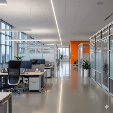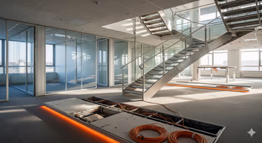Nous intégrons les matériaux et les techniques les plus modernes, comme les planchers techniques ou les cloisons en aluminium, pour créer des espaces intelligents, performants et contemporains qui répondent aux usages d'aujourd'hui et de demain.